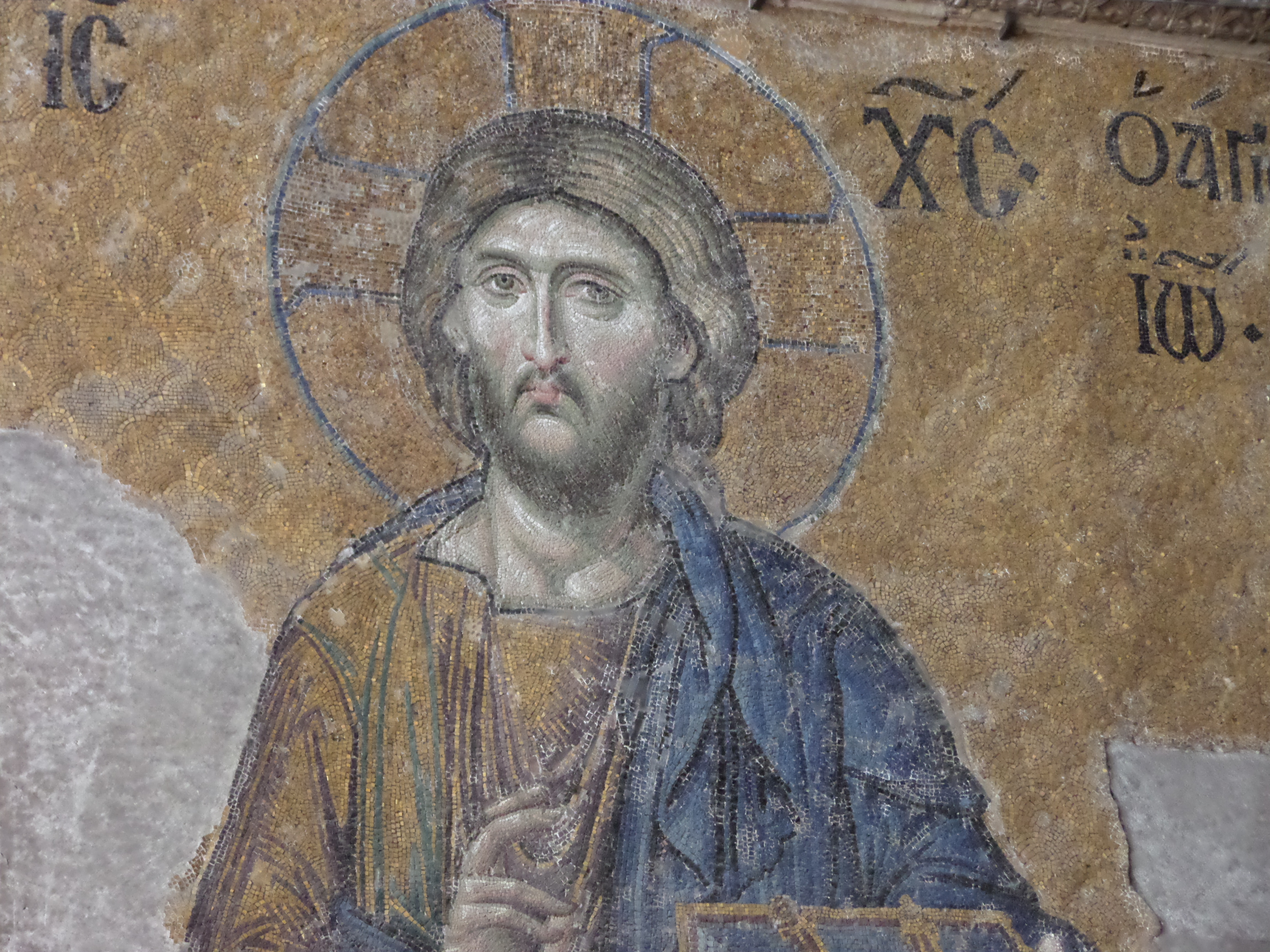 Detail of Jesus, Pantocrator, in the Deësis Mosaic in the west gallery of the Hagia Sophia