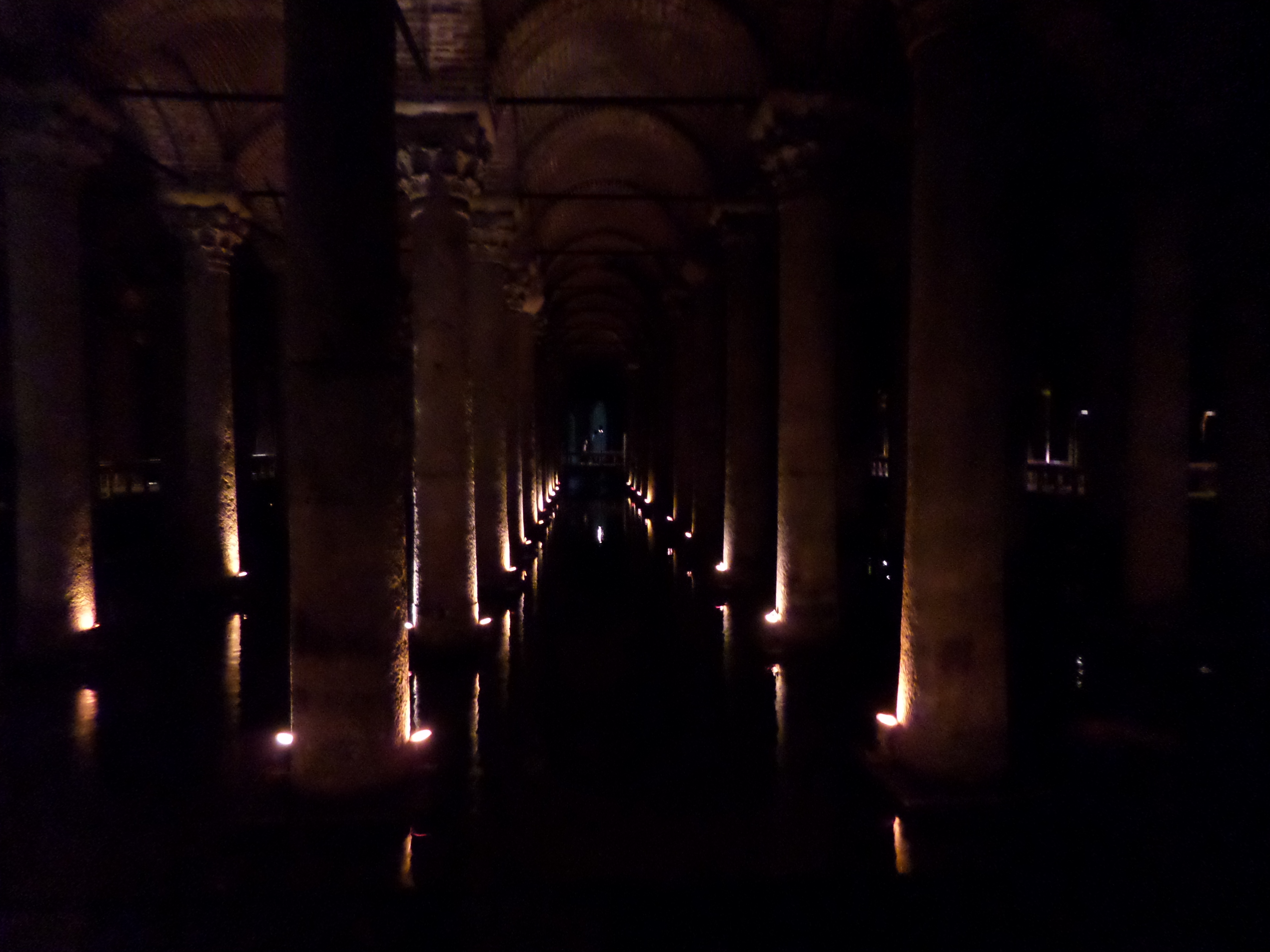 The underground Basilica Cistern in Constantinople was constructed by Justinian in the 6th century to supply water to the city. It has 336 marble columns.