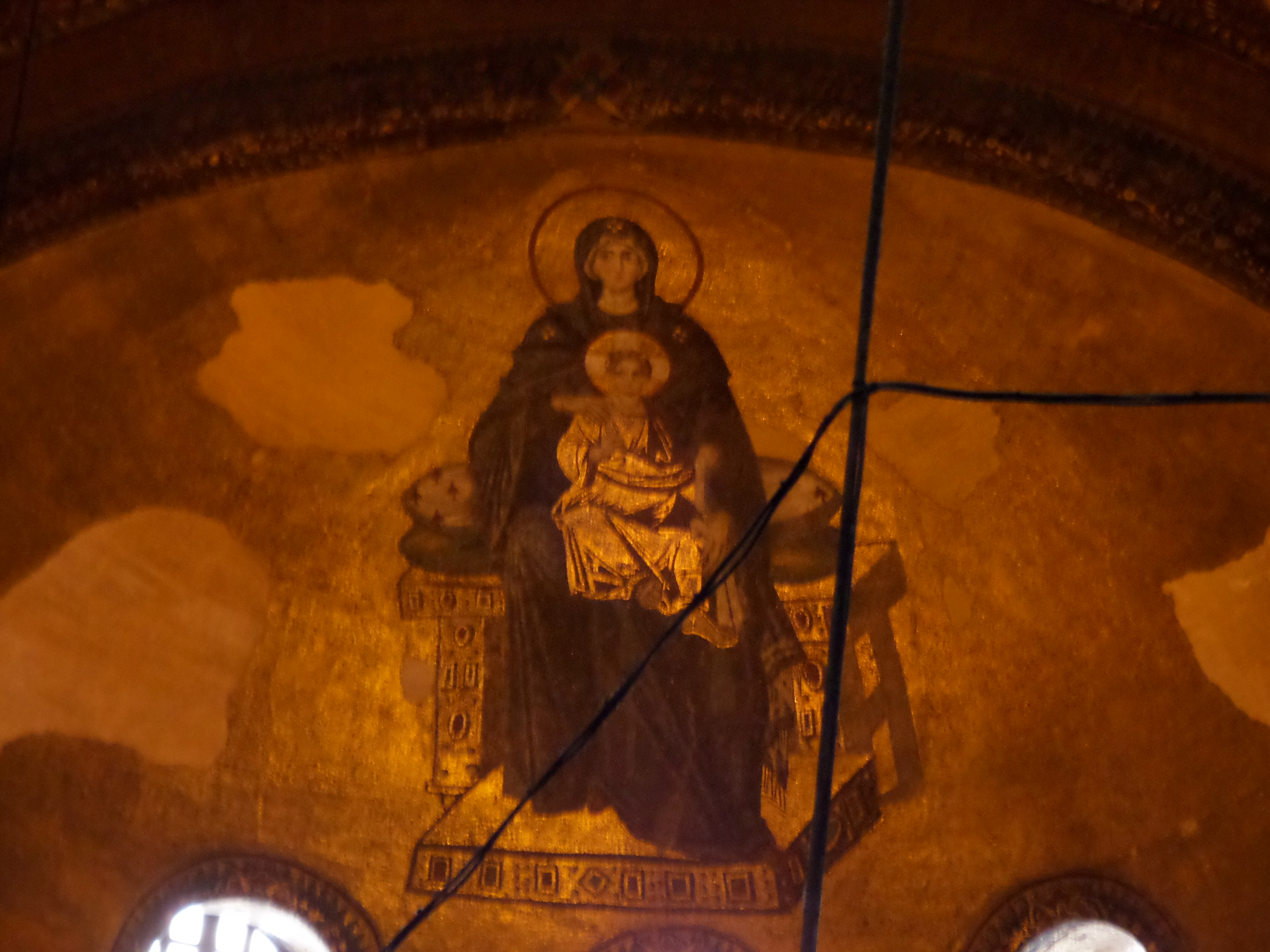 Mosaic of Virgin Mary holding the Christ Child in the East apse of the Hagia Sophia. 9th Century Mosaic