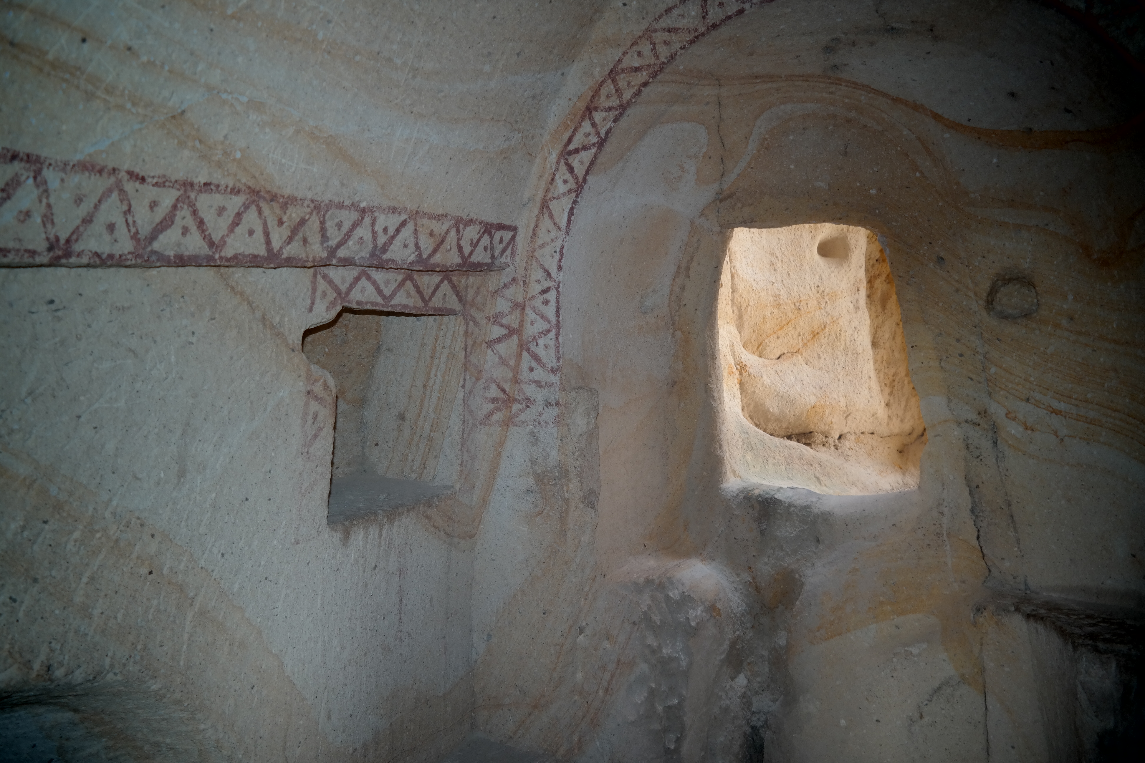 Red wall painting in the Nikephoros Phocus II in Çavuşin, Cappadocia Turkey