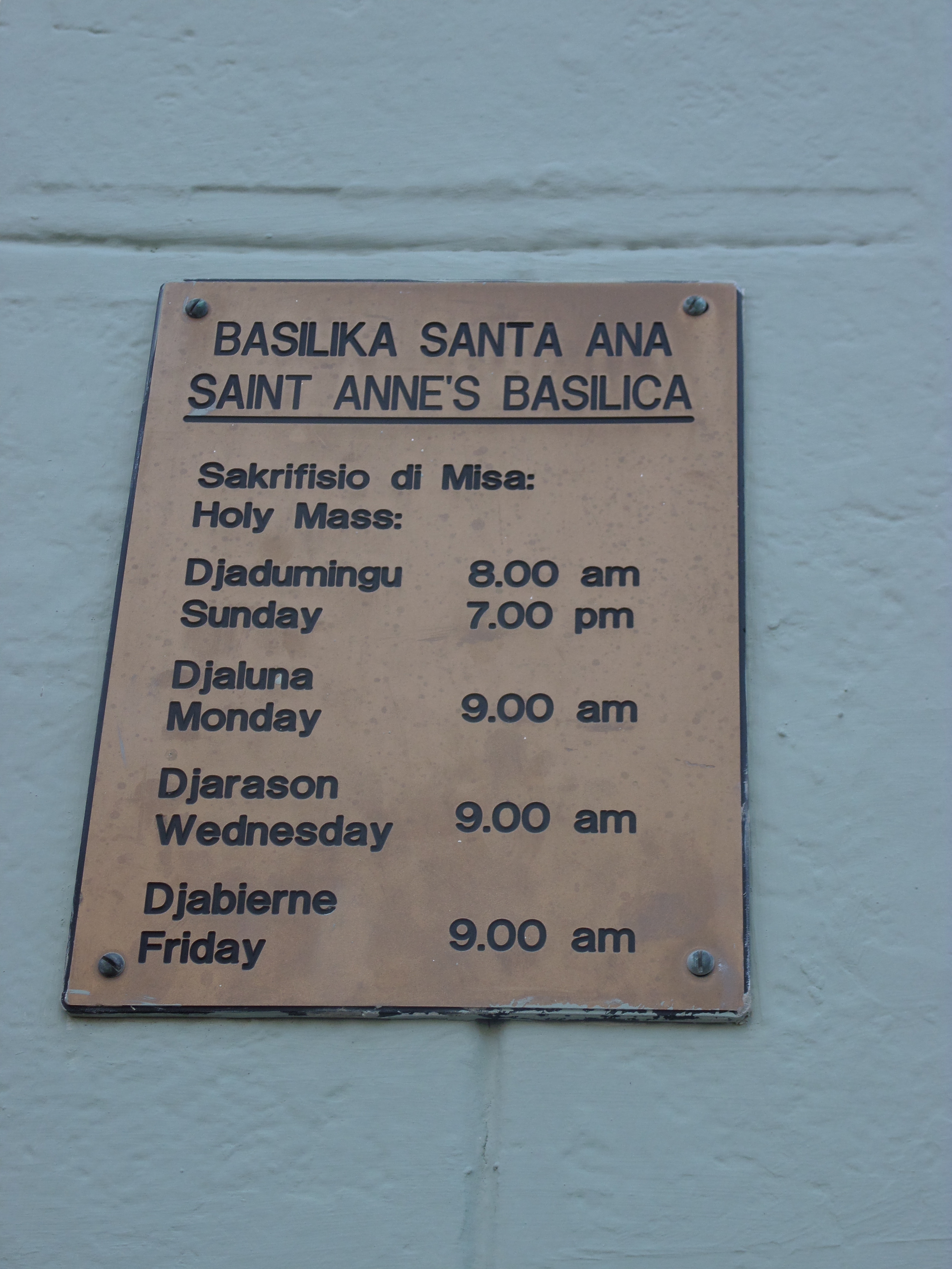 Sign Detailing Hours of Mass