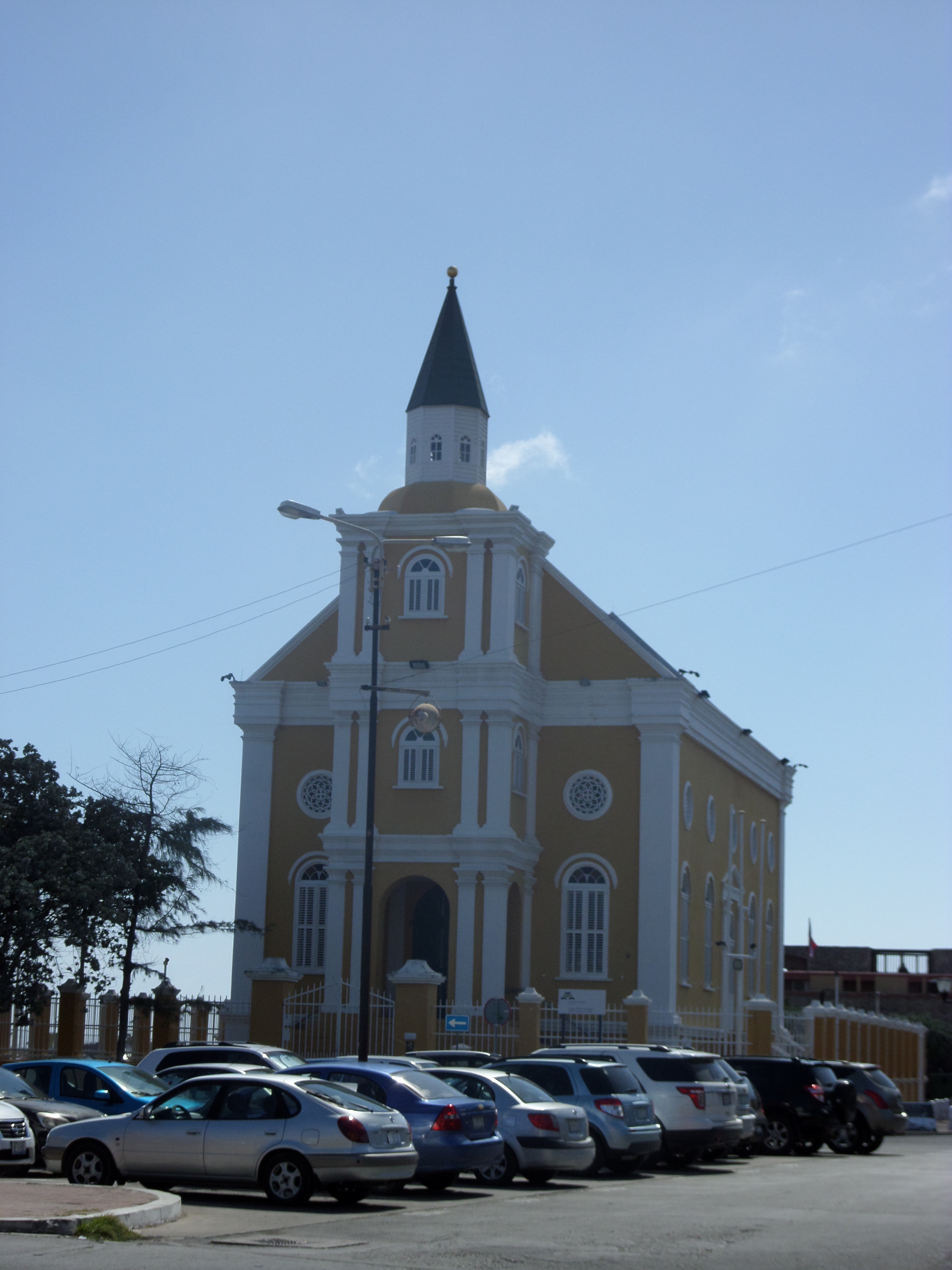 Neoclassical building that served as the temple (synagogue) for the Jewish Emanuel congregation of Dutch Reform Judaism from the time it split from Willemstad's Mikve Israel Congregation in 1866 until it reconciled with Mikve Israel until 1964. The building now houses the Counsel for Prosecution within Curacao's government.