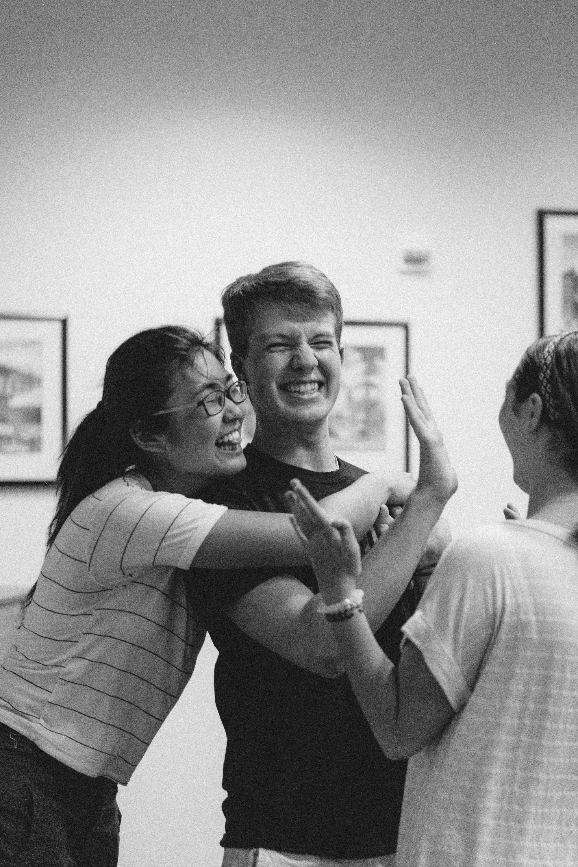 DYA students embrace and laugh