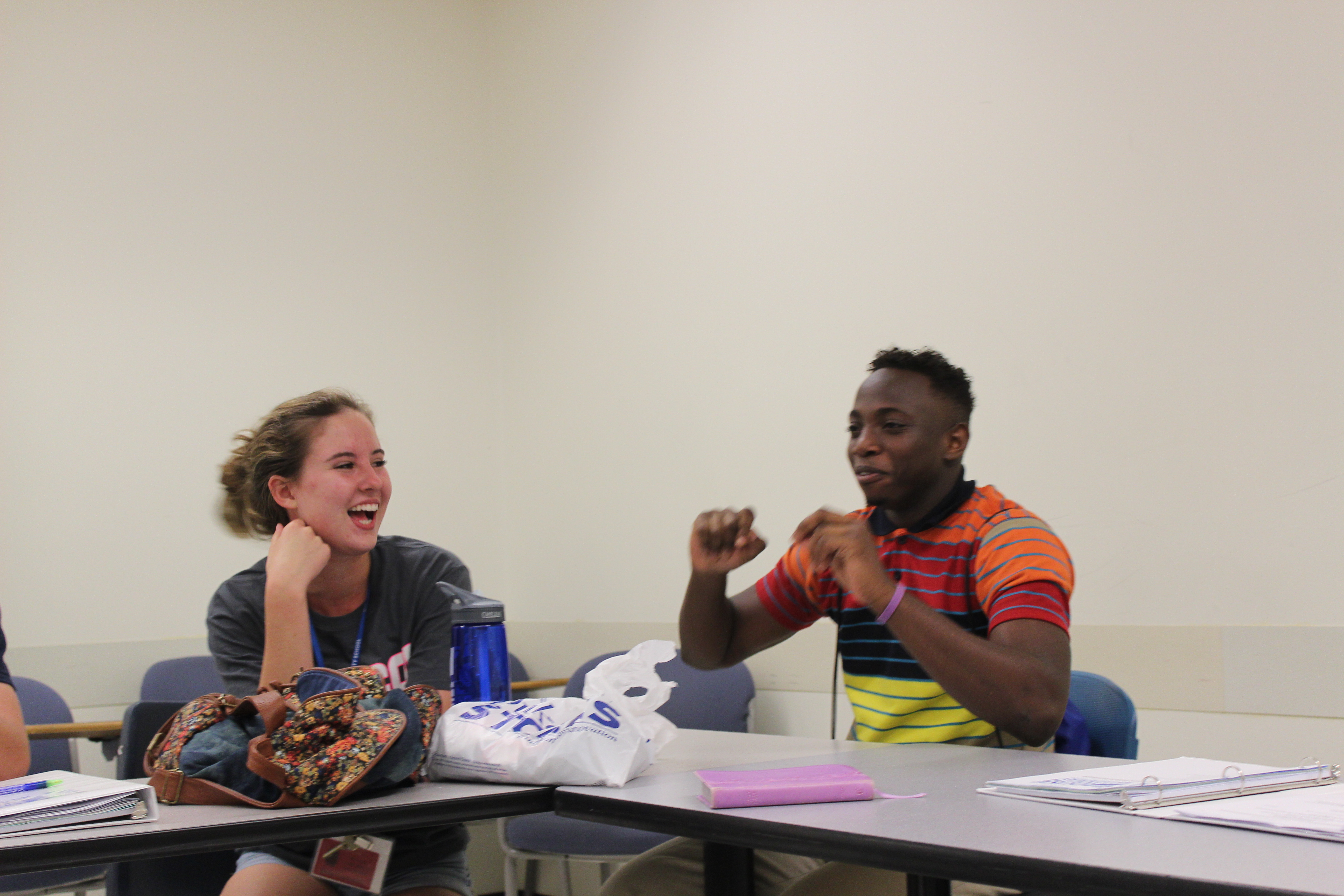 DYA volunteers laughing in a session in Langford classroom