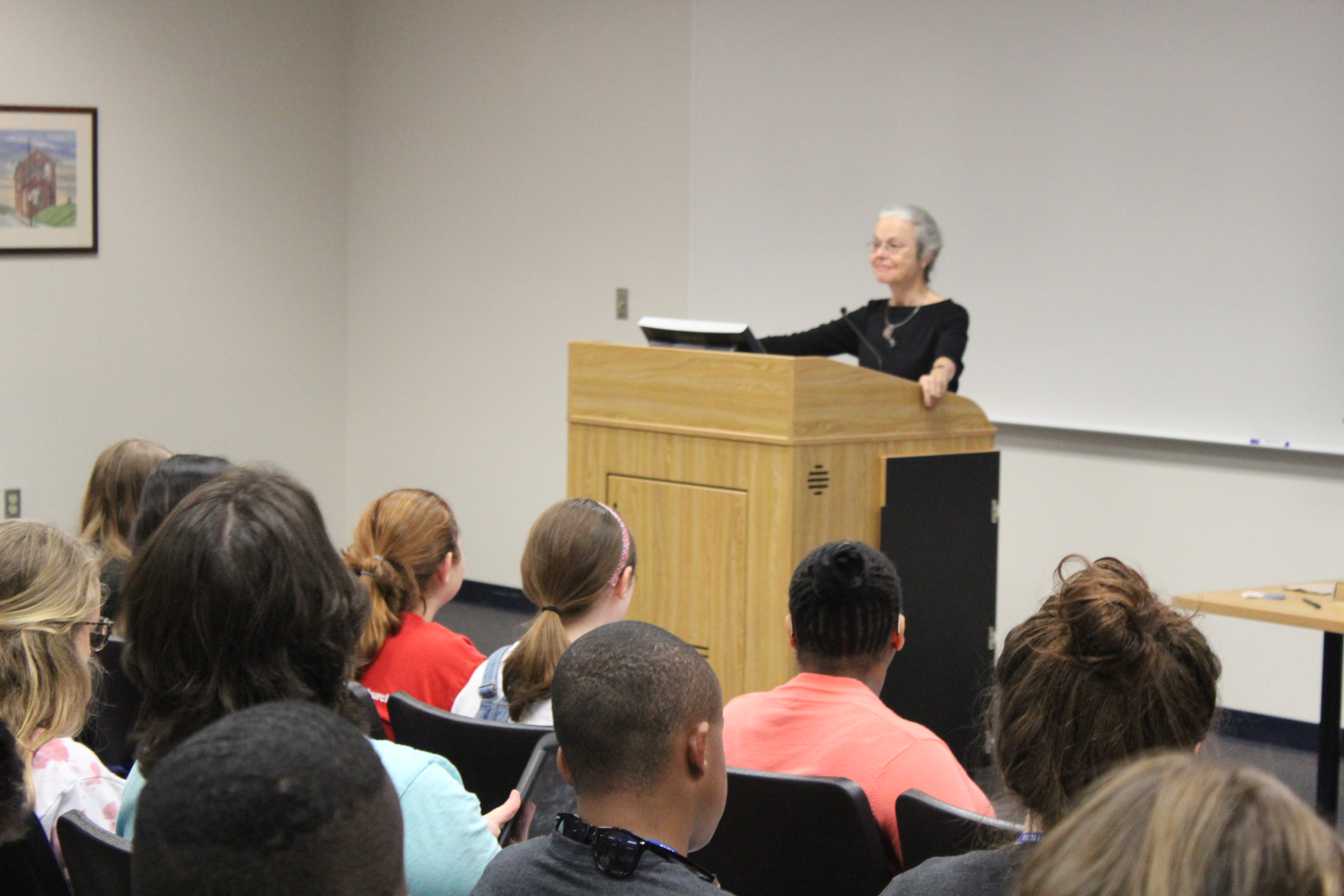 Ellen Davis speaks to DYA group in Westbrook classroom
