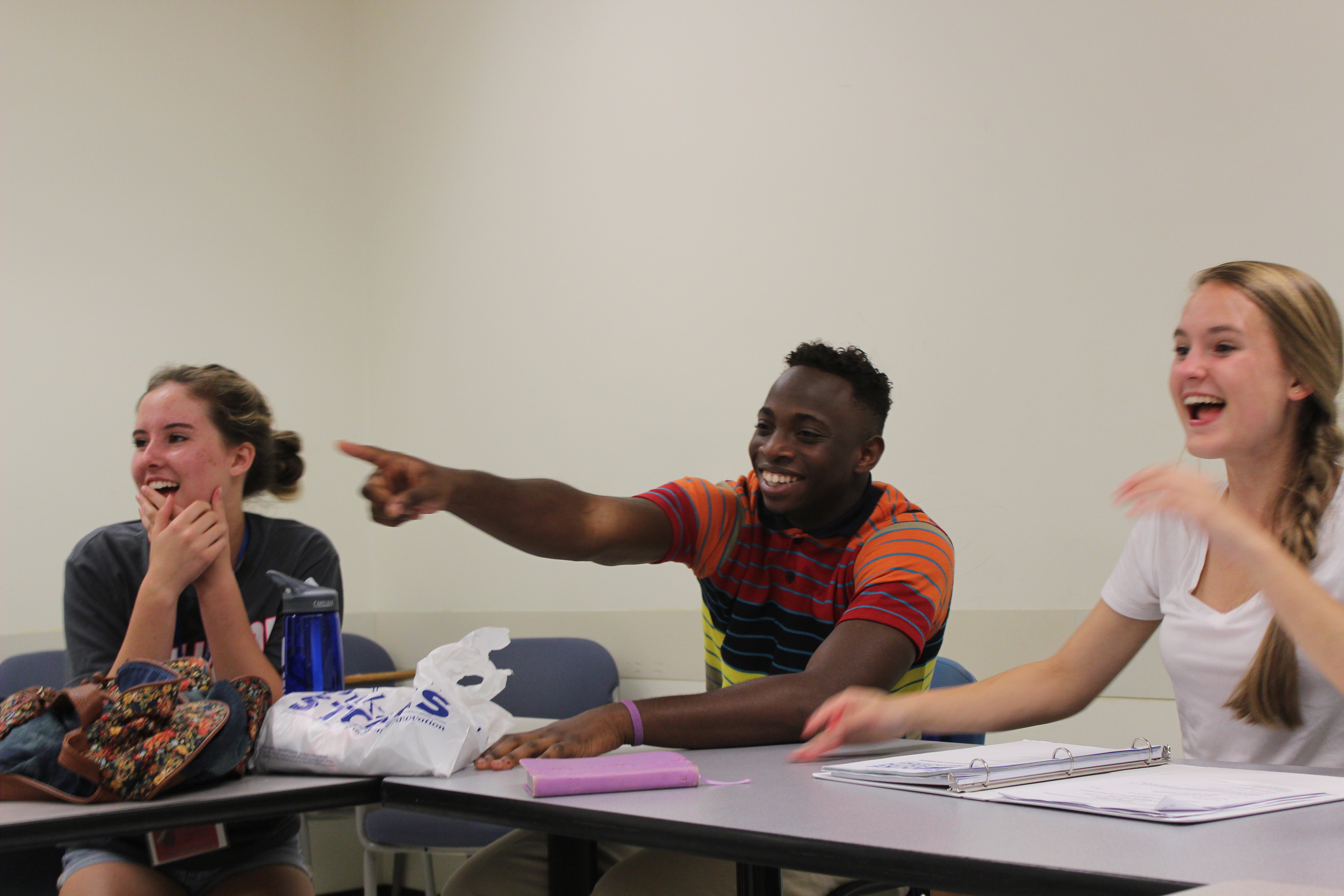 DYA volunteers laughing in a session in Langford classroom